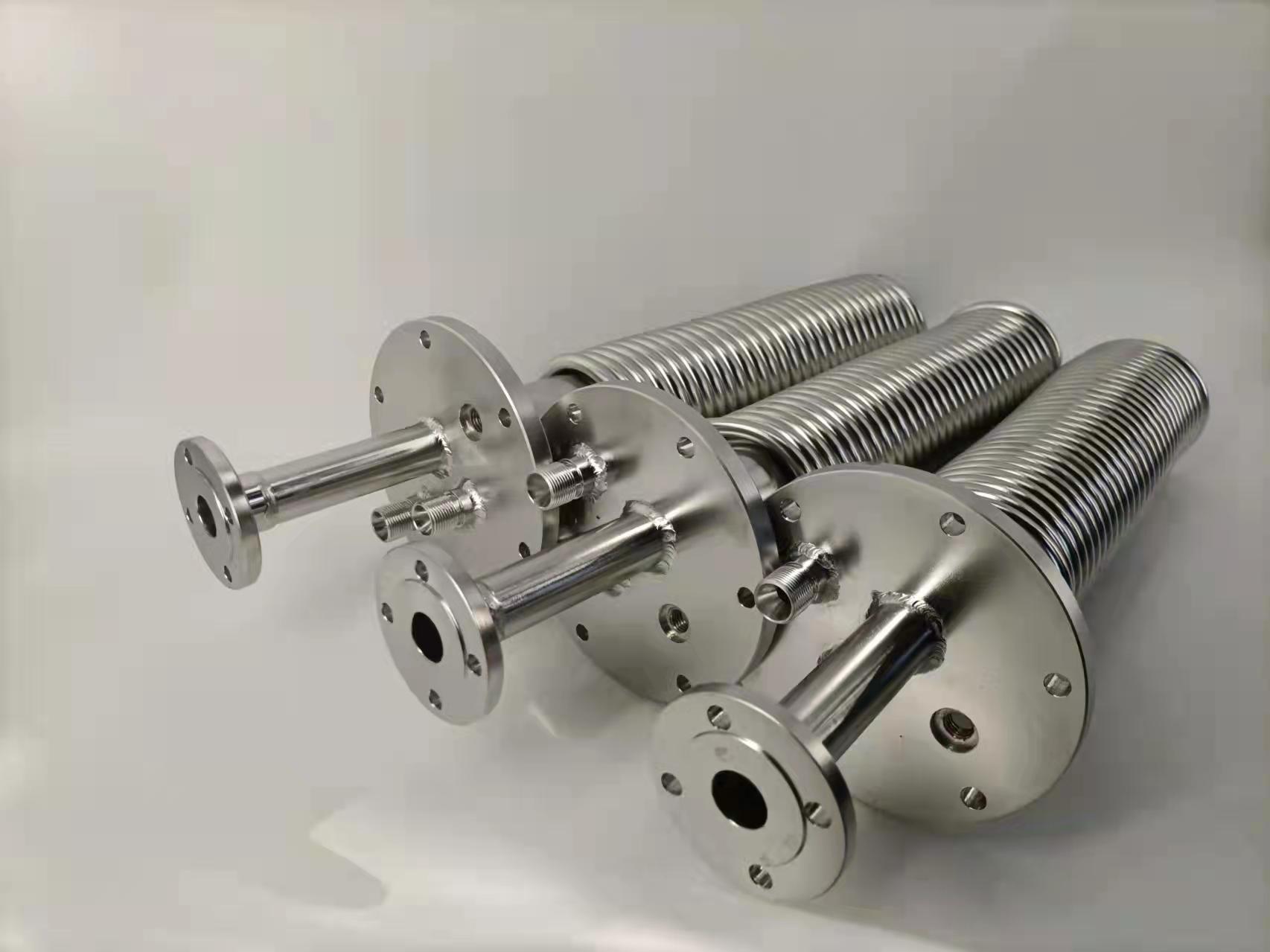 筒形冷卻器一般配套使用,前者用于一級冷卻,后者用于二級冷卻。單盤管預冷卻器:冷卻水從底部切向進水,冷卻水由下而上,待冷卻樣水沿螺旋管由上至下冷卻水和樣水的流向相反,兩者進行逆向熱交換。盤管內設置壓水擋板,確保冷卻水的液面到達內膽的法蘭下面。該系列冷卻器與上法蘭進出水的筒形冷卻器相比具有重量輕,拆卸維護方便等優點。冷卻器的樣水管壁厚達3mm,所以該冷卻器用于高溫測點的一級冷卻時能承受樣水與冷卻水之間很高的溫差,使用壽命長。經過前面GN01A型冷卻器的冷卻后,樣水的溫度一般可降低到100℃以下。