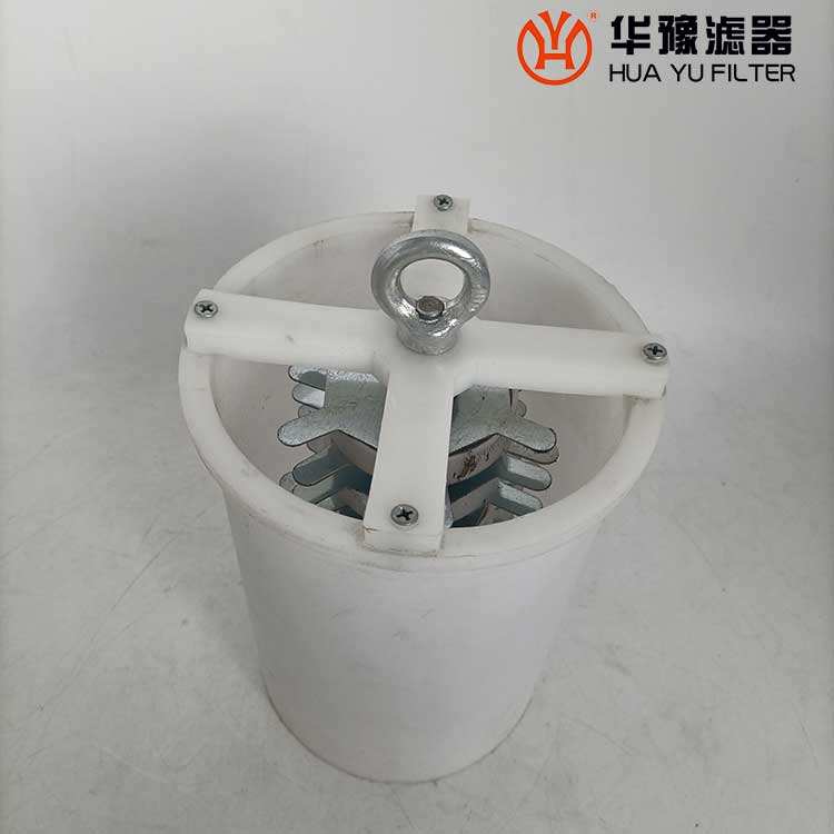 利用潤滑油自重狀態(tài)下的流動,經(jīng)簡單的網(wǎng)過濾和磁場吸附,使污垢及時得以分離,磁網(wǎng)一體化裝置是由圓筒形過濾網(wǎng)(帶底座)和磁串組成,在潤滑油經(jīng)該裝置落入油箱時,油液中直徑大于網(wǎng)目尺寸的污垢和一些鐵質(zhì)微粒就會被阻擋于裝置內(nèi),從而達(dá)到分離的目的。