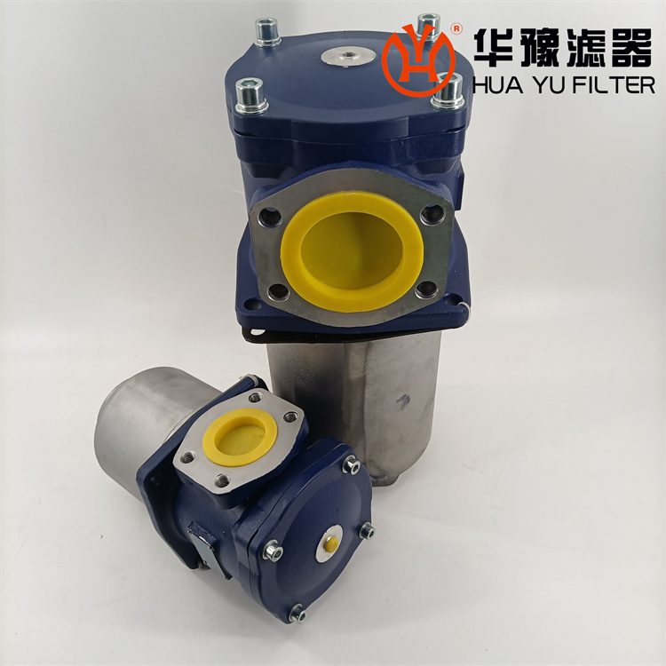 該過濾器的濾芯采用化纖過濾材質(zhì),具有過濾精度高,通油能力大,初始壓力損失小,納污量大等優(yōu)點,并裝有壓差發(fā)訊器及旁通閥。當(dāng)濾芯堵塞到進(jìn)出油口壓差為0.35MPa時,便發(fā)出開關(guān)信號,此時應(yīng)更換濾芯。如果不能馬上停機(jī)或無人來更換濾芯,裝在濾芯上部的旁通閥會自動開啟,以保護(hù)系統(tǒng)。