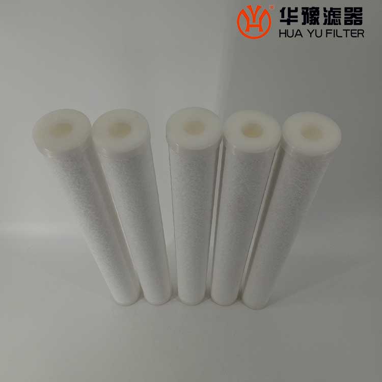 PP濾芯是由超細聚丙烯纖維熱熔纏結(jié)制成。超細纖維依靠自身粘合和纏結(jié),在空間隨機構(gòu)成三維微孔結(jié)構(gòu),纖維間聯(lián)結(jié)不需要任何粘合劑,尤其具有徑向纖維呈梯度變化的特點,是多孔型和織物型過濾介質(zhì)的綜合體。一方面可以形成深層過濾(多孔型過濾材料的特點),另一方面又可以形成表面過濾(織物型過濾材料的特點),是集預(yù)過濾、精過濾和重力沉降于一體的復(fù)合過濾材料,現(xiàn)已***地應(yīng)用于生活飲用水凈化、工業(yè)純水的過濾和其他流體的過濾。
